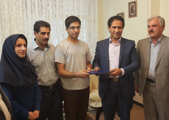 تقدیر از دانش آموز مهدی حاتمی در حضور خانواده محترم ایشان. رتبه ( 30 ) کنکور 94