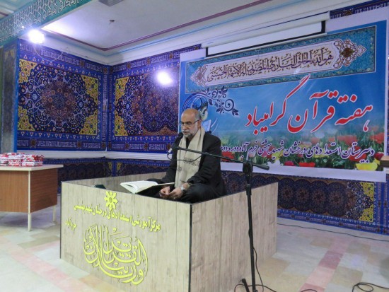 جلسه انس با قرآن به مناسبت گرامیداشت هفته پربرکت قرآن روز سه شنبه مورخ 1396/9/28  با حضور اساتید برجسته کشوری آقایان استاد حاج گوشه ای و استاد حاج مهدی پاپی  و قرائت آیاتی چند از کلام الله مجید توسط این عزیزاندر سالن اجتماعات دبیرستان استعدادهای درخشان شهید بهشتی برگزار گردید. دراین جلسه که آقایان حجت الاسلام کشاورز رئیس اداره عترت و نماز استان ، نظری معاون پرورشی ناحیه یک ،زینی وند کارشناس واحد قرآن حضور داشتند جناب آقای دکتر یوسفوند معاون محترم پرورشی اداره کل اموزش و پرورش استان لرستان به ایراد سخن پرداختند و در پایان جوایزی به فعالین حوزه نماز و قرآن اهدا گردید.