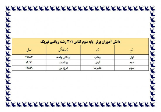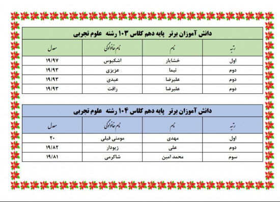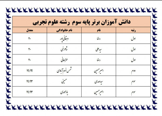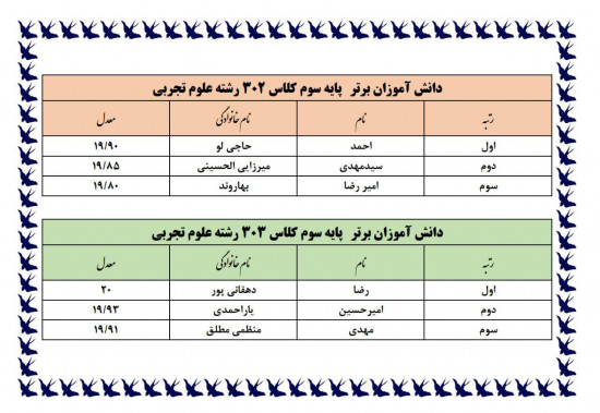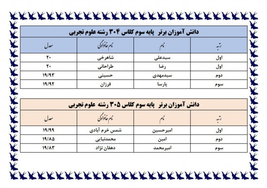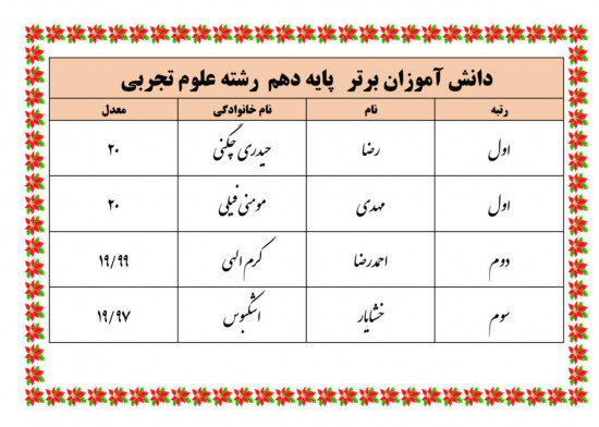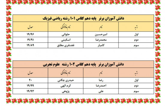 اسامی دانش آموزان برتر نیمسال اول 96-1395