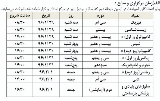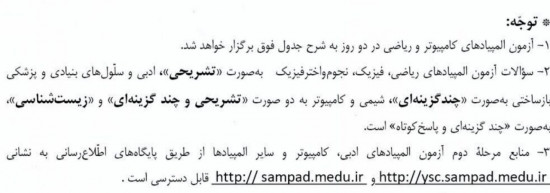 قابل توجه دانش آموزان پذیرفته شده در مرحله اول المپیادهای علمی