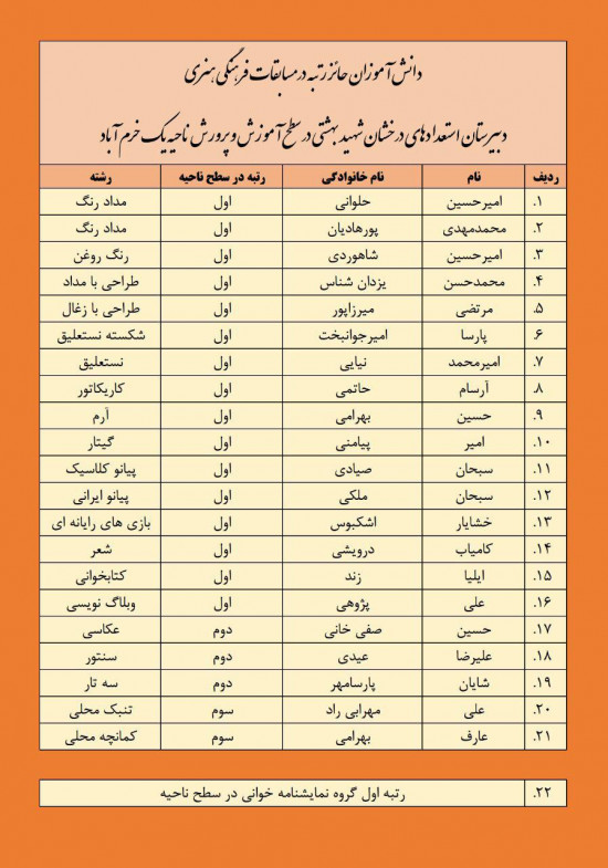 برترین های مسابقات فرهنگی هنری در سطح ناحیه یک خرم آباد