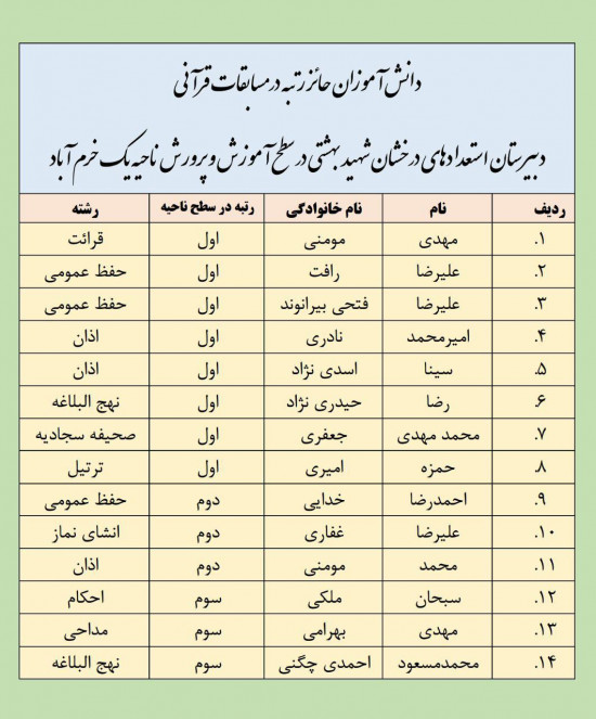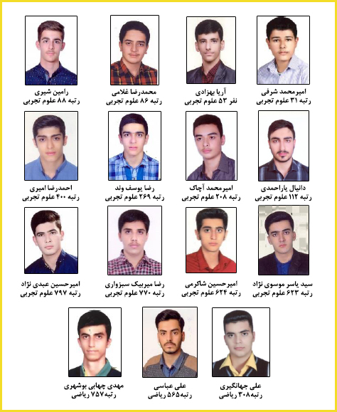 نفرات برتر کنکور دبیرستان استعدادهای درخشان شهید بهشتی خرم آباد